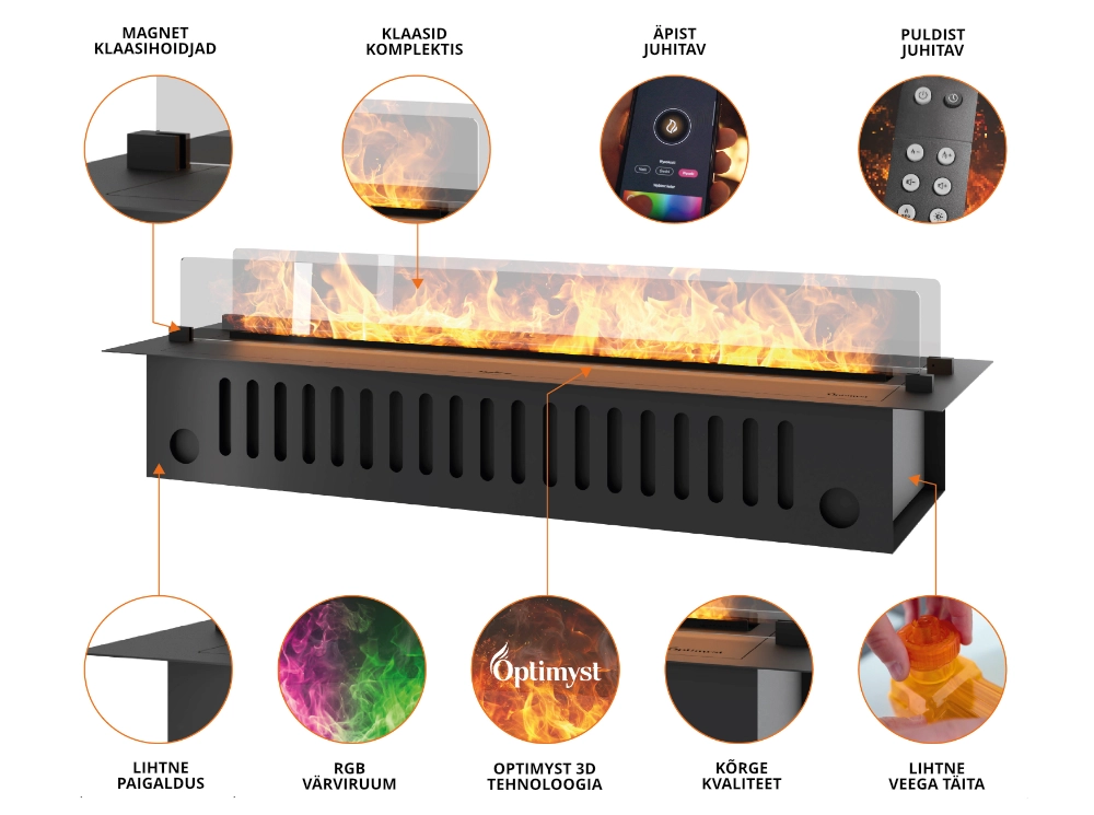 Kamin on ühtlasi varustatud heli emulaatoriga, mis imiteerib küttepuude praksumist koldes.