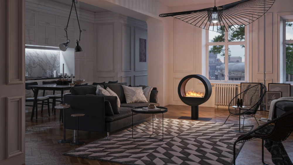 InFire Incyrcle Stand 2Side on kahepoolne vabaltseisev biokamin, mis oma kauni disainiga sobib ideaalselt kaasaegsesse või loft-tüüpi interjööri.