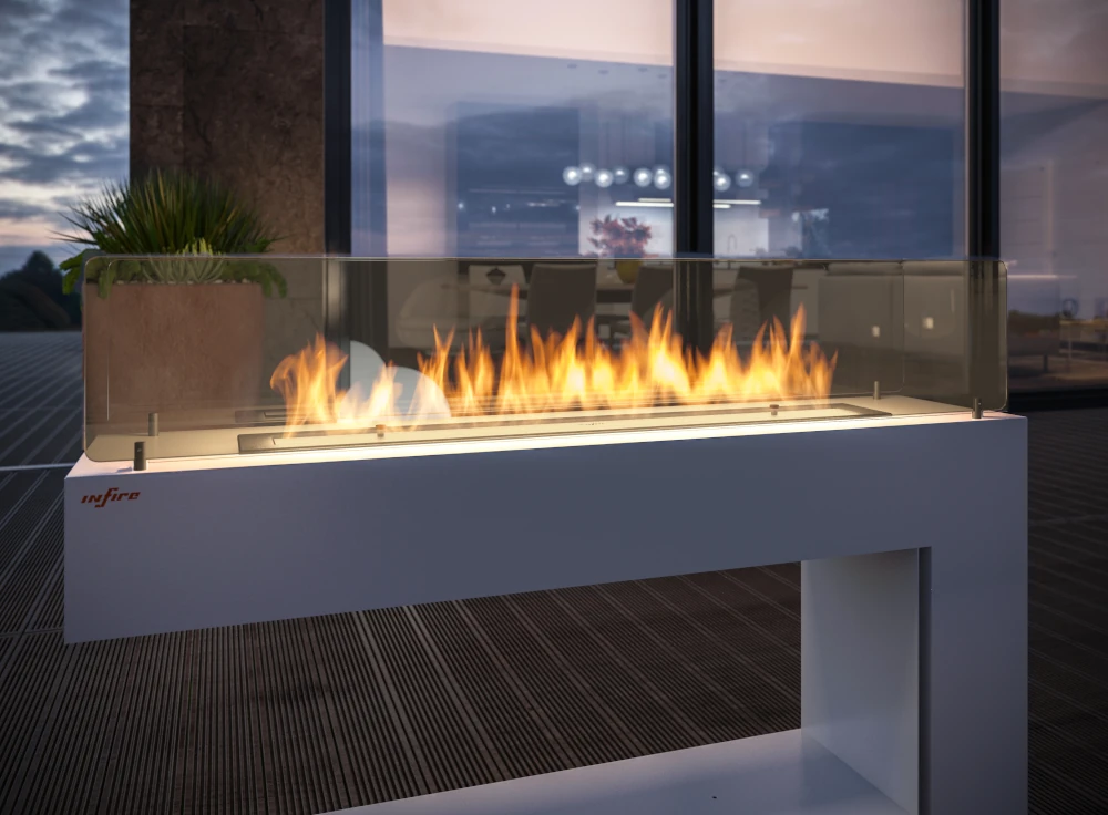 Biokamin ei vaja korstnaühendust ega ka spetsiaalset ventilatsioonisüsteemi ja sobib seetõttu absoluutselt kõikjale – kodudesse, kontoritesse, restoranidesse või teistesse kliente teenindavatesse ruumidesse. Võid kindel olla, et InFire Spectrum biokamin oma moodsa disainiga ei jää märkamatuks kellelegi. Kamin on varustatud 4 mm paksuse õrnalt toonitud karastatud klaasiga, mis suurendab ohutust ja stabiliseerib tulejoont.
