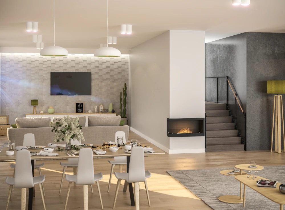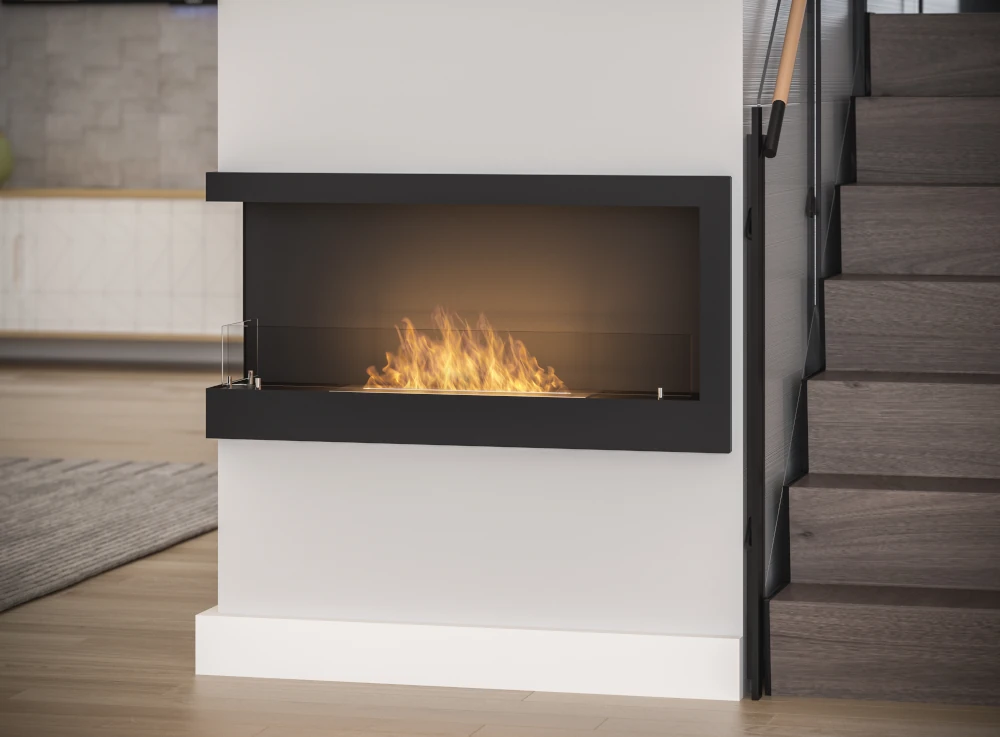 See atraktiivne seina sisse süvistatav vasakpoolse nurgaga biokamin sobib ideaalselt korterisse, eramusse, hotelli, restorani ja teistesse interjööridesse kuna see ei vaja korstnaühendust ega spetsiaalset ventilatsioonisüsteemi. Bioetanool põleb puhtalt (ei lõhna, ei suitse, ei tahma) ja on usaldusväärne ning ohutu.