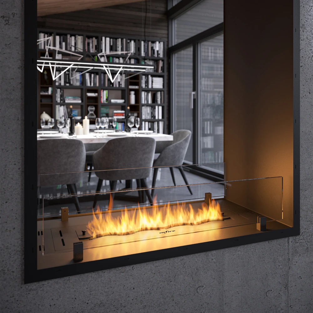 Biokamina põletil on keraamilisest kiust siseosa koos võrguga, mis parandab ohutust ja ühtlasi pikendab ning optimeerib põlemisprotsessi. Lainekujuline põleti loob täiendava 3D efekti, mis teeb elava tule jälgimise põnevaks. Mugava liugkatiku abil on võimalik leegi kõrgust reguleerida ja samuti leek kustutada. Biokamin SLIMfire 2Side 1400 Slim Vertical on ühtlasi varustatud mõlemalt poolt 8 mm paksuse karastatud Opti-White klaasiga, mis suurendab ohutust ja stabiliseerib tulejoont.