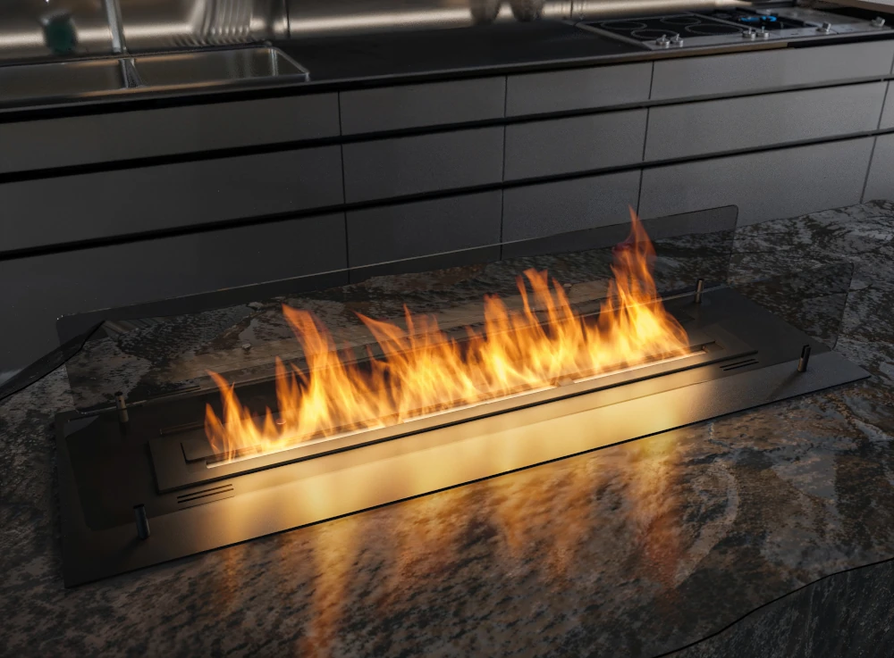 InFire Insert Black 1000 on kauni viimistlusega biopõleti, mis koos 4 mm karastatud klaasidega loob ühtse ja esteetilise terviku. Antud biopõleti sobib suurepäraselt süvistamiseks erinevatesse kõrgetele temperatuuridele mittetundlikesse materjalidesse. Süvistamiseks on vajalik ava mõõtmetega 84 x 20 x 6 cm. Tulemus jääb kõikjal atraktiivne ja stiilne. Pealegi ei vaja see korstnaühendust ega ka spetsiaalset ventilatsioonisüsteemi.