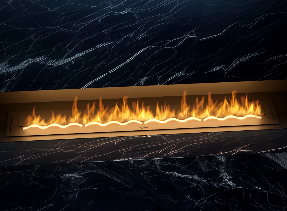 Biopõletil on keraamilisest kiust siseosa koos võrguga, mis parandab ohutust ja ühtlasi pikendab ning optimeerib põlemisprotsessi. Lainekujuline põleti loob täiendava 3D efekti, mis teeb elava tule jälgimise põnevaks. Mugava liugkatiku abil on võimalik leegi kõrgust reguleerida ja samuti leek kustutada.