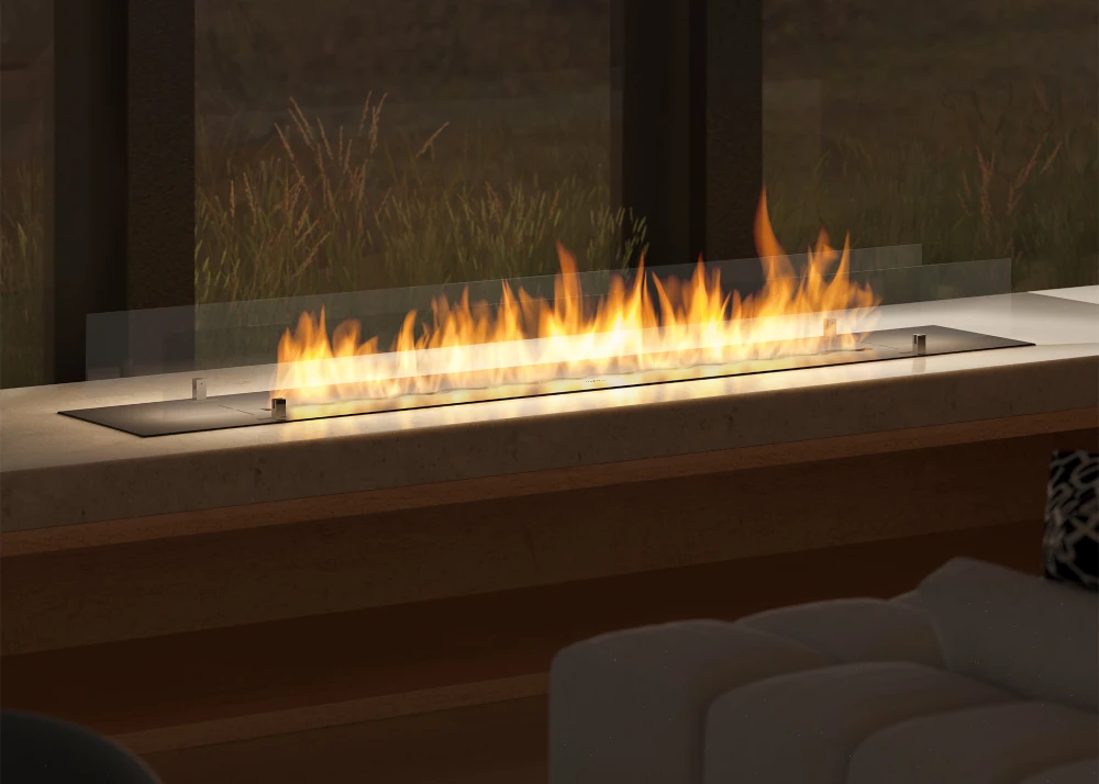 Antud biopõleti on varustatud kahe 8 mm paksuse karastatud Opti-White klaasiga, mis suurendab ohutust ja stabiliseerib tulejoont ning loob ühtlasi biopõletist ühtse ja esteetilise terviku.