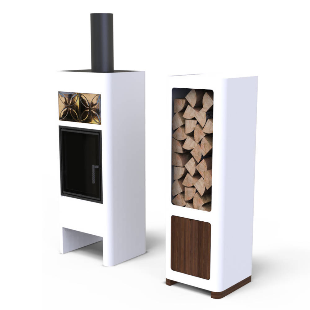Sel valget värvi ja dekoratiivsete soojust koguvate keraamiliste plaatidega kaunistatud disainkaminal on turvaline topeltkesta süsteem, mis kaitseb seda ülekuumenemise eest ja on ohutu lastele ning lemmikloomadele.