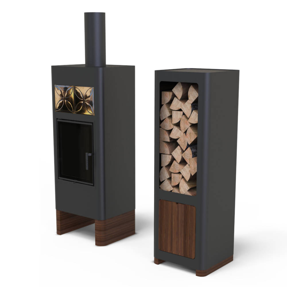 Disainkamin Unico Luna Wood kaminapuude hoidjaga