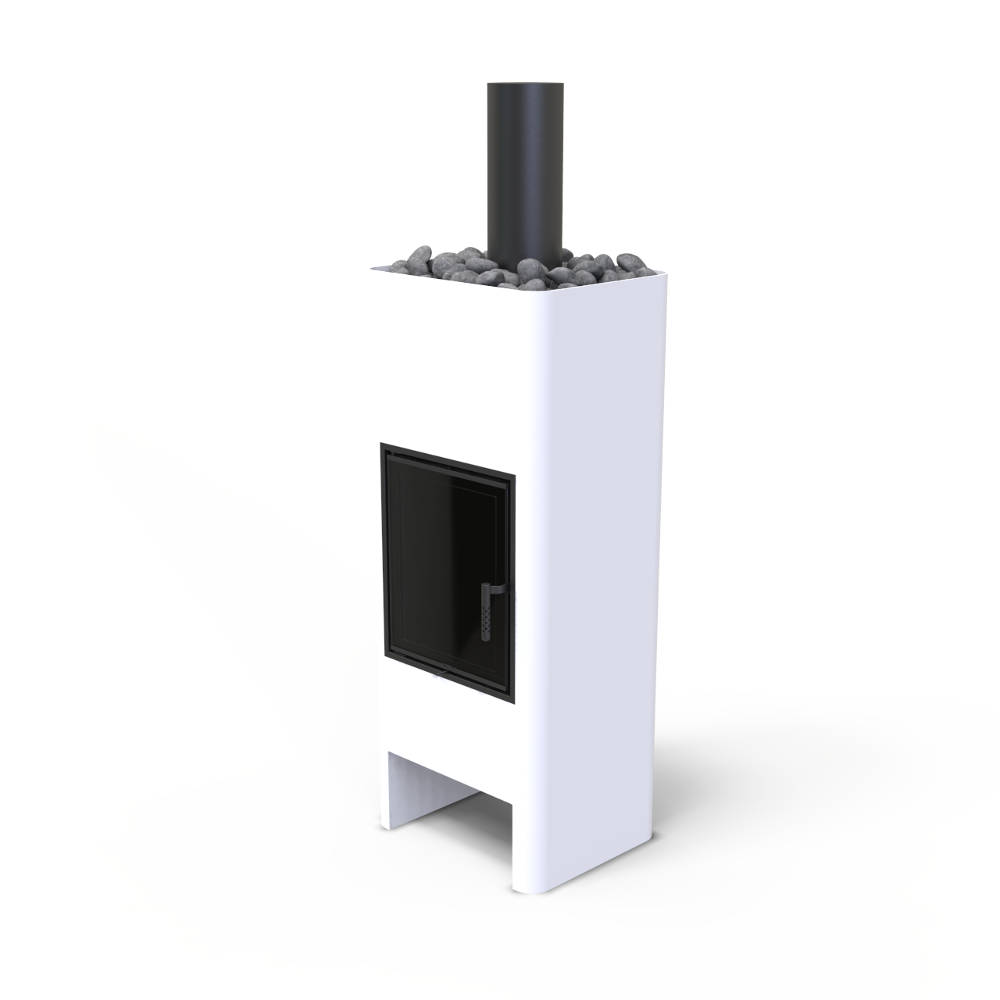 Disainkamina Unico Timo Steel südameks on populaarne ja omas klassis usaldusväärne kaminasüdamik Unico Dragon 8 Slim, mis on mustast šamotist koldesisuga.