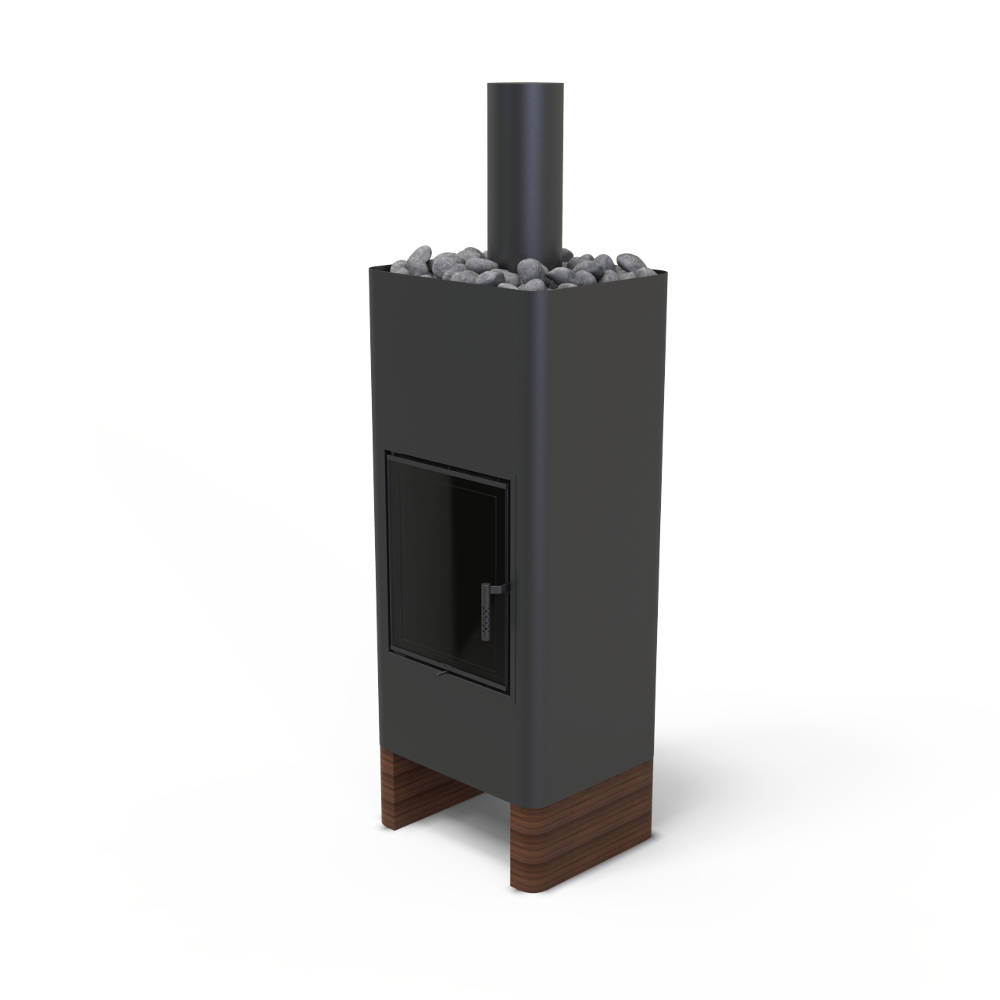 Disainkamina Unico Timo Wood südameks on populaarne ja omas klassis usaldusväärne kaminasüdamik Unico Dragon 8 Slim, mis on mustast šamotist koldesisuga.