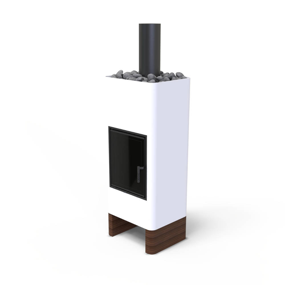 Disainkamina Unico Timo Wood südameks on populaarne ja omas klassis usaldusväärne kaminasüdamik Unico Dragon 8 Slim, mis on mustast šamotist koldesisuga.