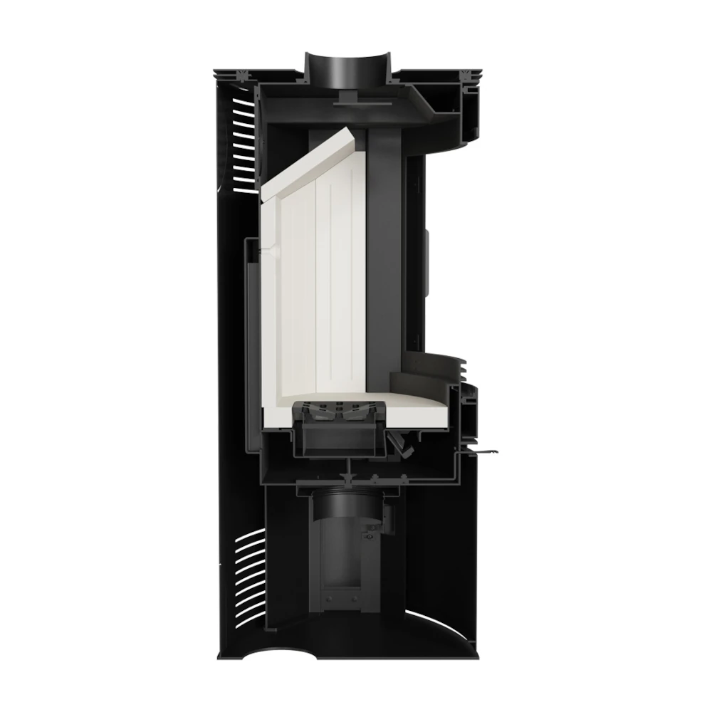 Kamina kolle on varustatud kuumakindla TERMOTEC keraamikaga, mis on soojust akumuleeriv materjal ja talub temperatuuri kuni 660°C. TERMOTEC sile ja hele pind näeb ühtlasi väga muljetavaldav välja. Kaminal on kaks koldelae peeglit ehk deflektorit, mis pikendavad heitgaaside teed ja vastutavad kütuseosakeste järelpõlemise eest. Tänu kaasaegsetele tehnilistele lahendustele vastab see kamin ka kõige rangematele keskkonnastandarditele, sealhulgas Saksa BImSchV 2 standardile.