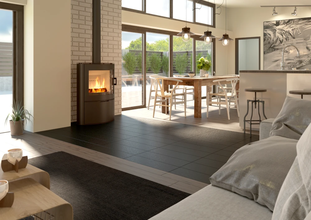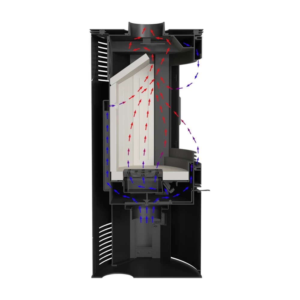 Kamin on muuhulgas varustatud puhta klaasi süsteemiga. Jahedam välisõhk suunatakse klaasile, mis tekitab sinna õhukardina ja takistab liigse tahma ladestumist klaaspinnale.