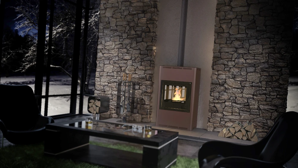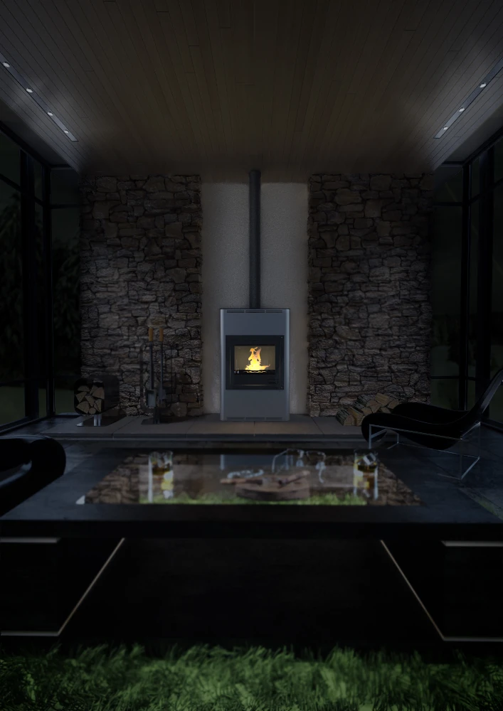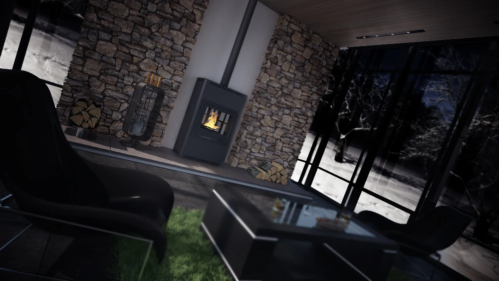 Antud keskküttekamin on varustatud puhta klaasi süsteemiga, mis takistab eelsoojendatud õhuvoolu abil liigse tahma kogunemist klaaspinnale.