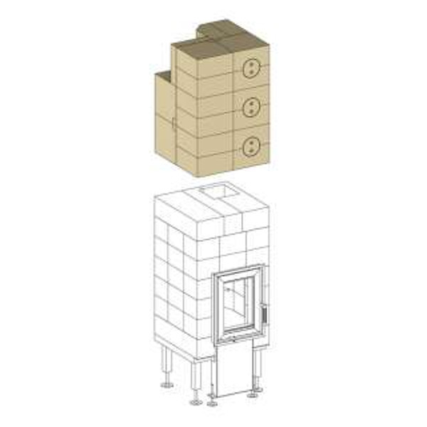 Komplekt sisaldab šamotist moodulplokke, valatud malmist ühendusdetaili ja ehitusmörti.