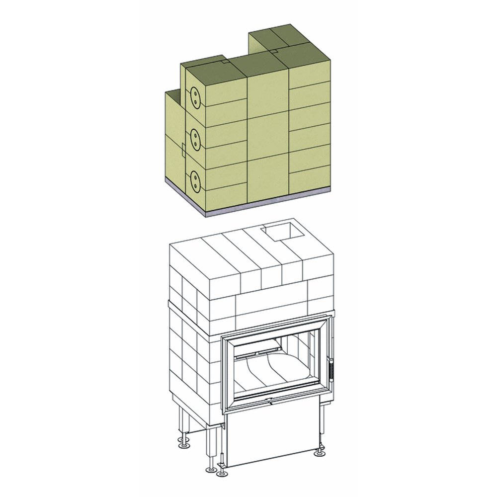 Komplekt sisaldab šamotist moodulplokke, valatud malmist ühendusdetaili ja ehitusmörti.