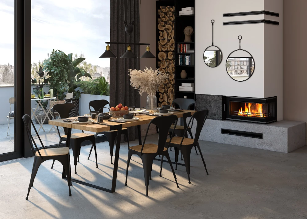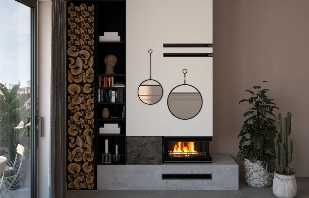 Kaminasüdamiku kolde allosas on turvaline piire, mis takistab puude väljakukkumist kaminast või puude kukkumist vastu klaasi.