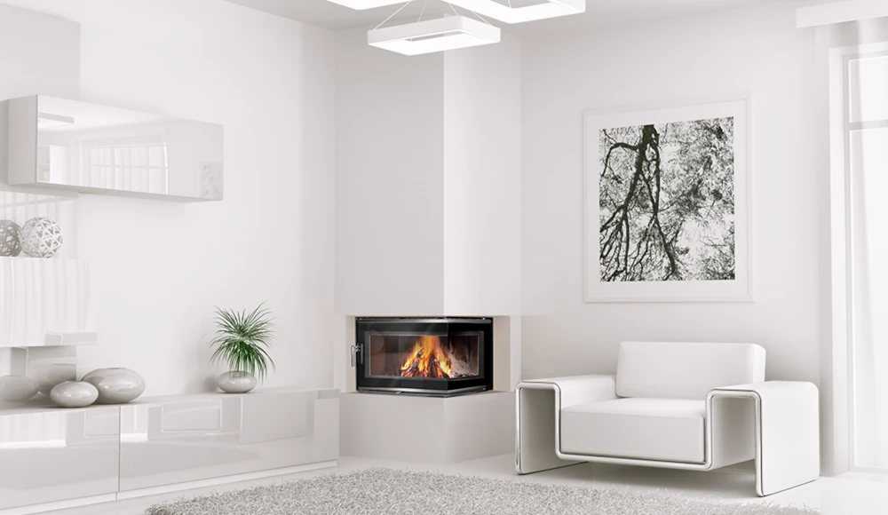 Kaminasüdamiku suur klaasuks võimaldab nautida elavat tuld aga lisaks sellele saad nautida ka hubast soojust kuna soojuse paremaks ja pikemaaegsemaks eraldamiseks on kaminasüdamiku pinnal tihedalt asetsevad ribid.