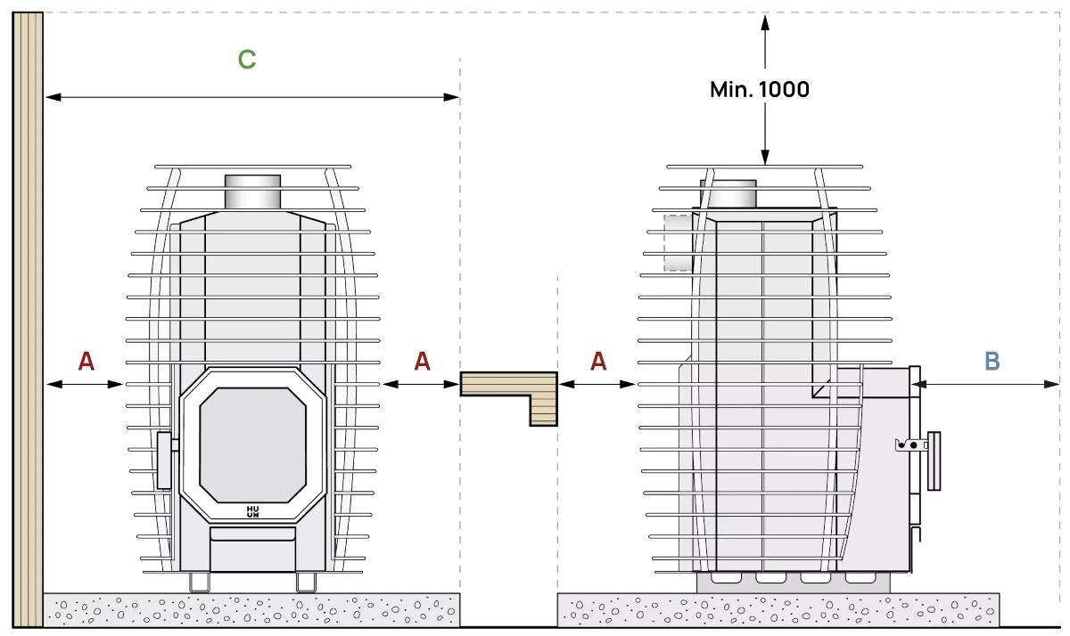Komplekt sisaldab puukerist. Keris vajab juurde 105 kilogrammi 5-10 cm läbimõõduga kive ja ühendust korstnaga.