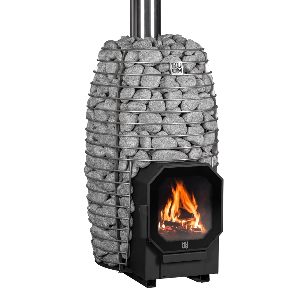 Komplekt sisaldab puukerist. Keris vajab juurde 150 kilogrammi 5-10 cm läbimõõduga kive ja ühendust korstnaga.