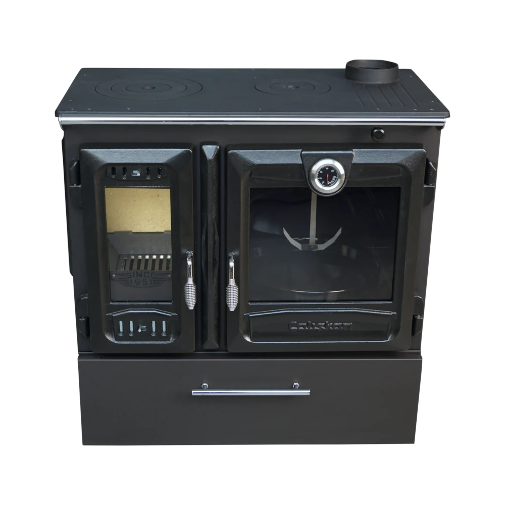 BOX-versioonil on allosas on suur sahtel, kus on mugav hoiustada puuhalge, nõusid või muud vajalikku. Pliit on viimistletud portselan-emailiga ja näeb visuaalselt elegantne välja.