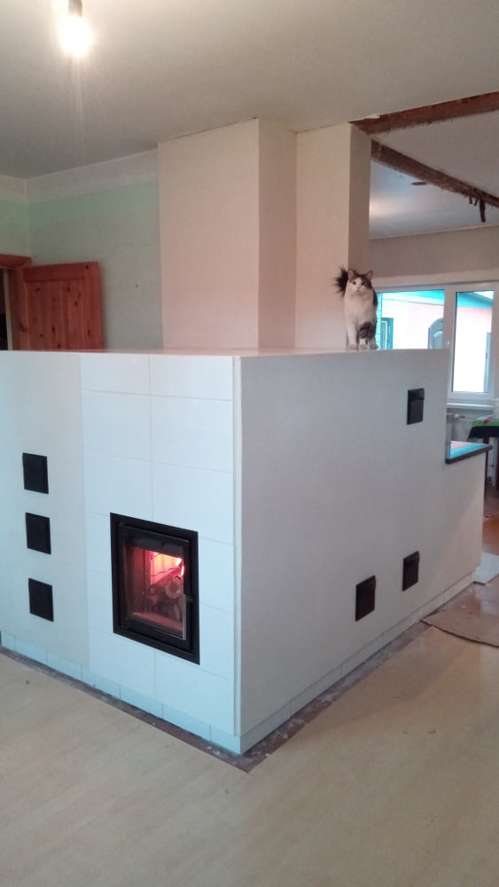 Ahju ja pliidi kompleks, mille kiitsid heaks nii tellija kui ka pildil olev kass Miku. Nii ahju kui pliidi põlemisõhu tõime ventileeritavast keldrist st põlemiseks ei raisata juba ülessoojendatud ruumi õhku. Kütteautomaatika teeb kütmisprotsessi mugavaks ja piirab kollet jahutavat liigõhku, eriti põlemise lõpufaasis.