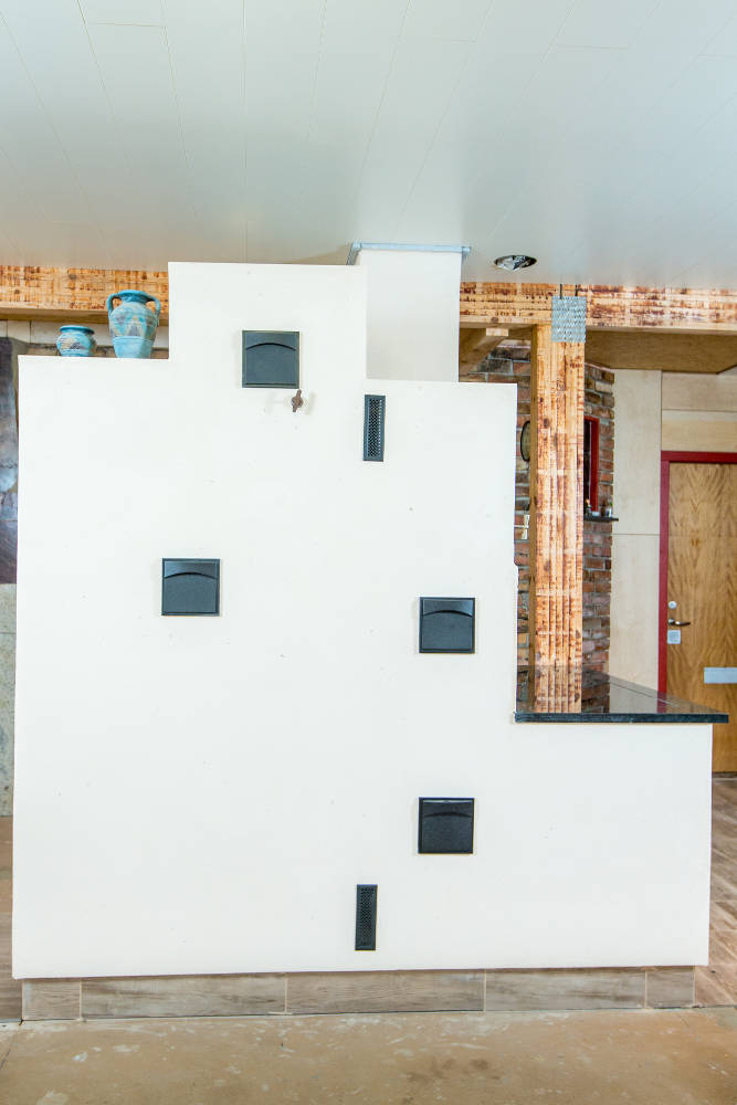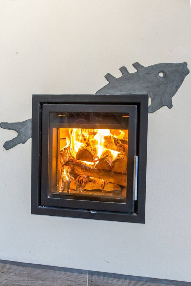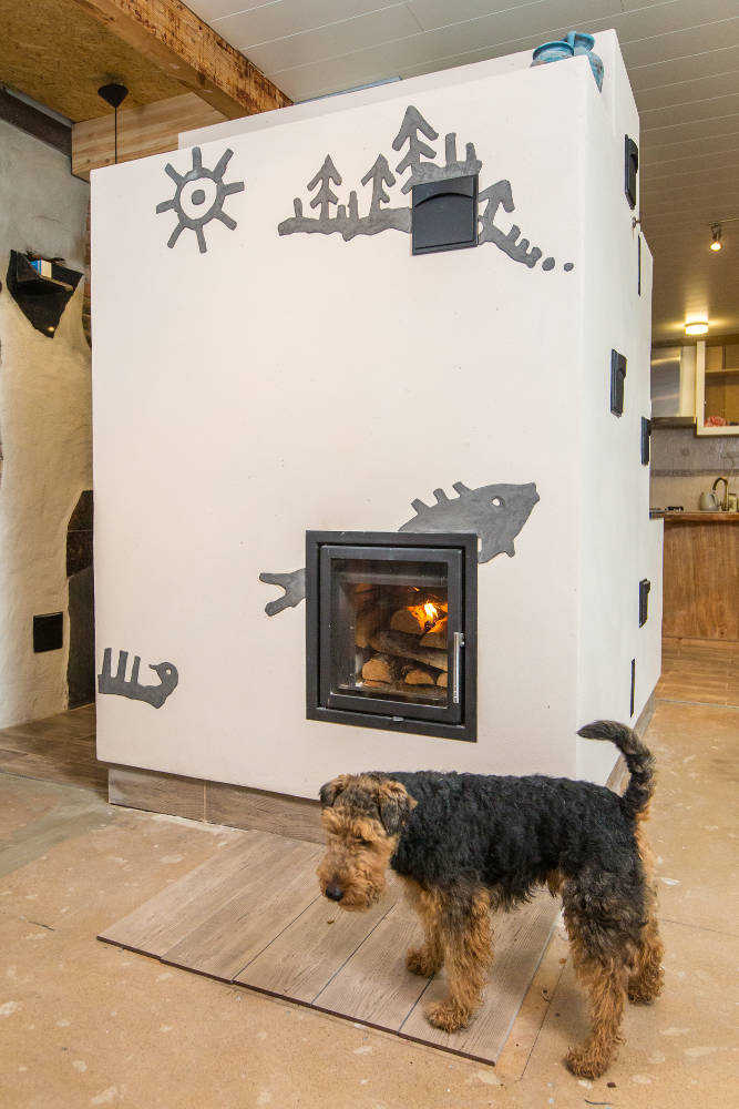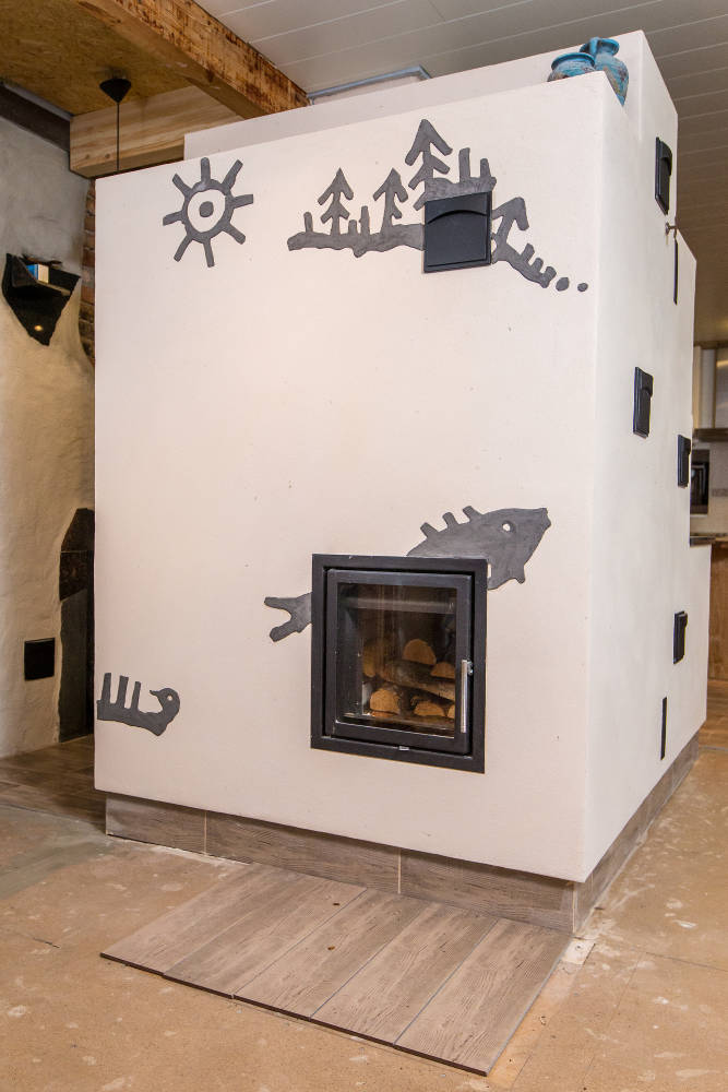 Kas teadis, et Äänisjärve kaljujoonised on ühed unikaalsemad kogu maailmas. Läänemere soome ja saami/lapi hõimudele olid looduse elemendid eluliselt väga olulised kuna 6200-4600 aastat tagasi raiuti/riibiti graniiti sisse kõige püsivamat ja tähtsamat väärtust omavad elemendid nagu päike, puu, mets, paat, kala jne. Sellest inspireerituna valmiski antud kaljujoonistega ahjukompleks. Ahjukompleksi teostus meilt, maalingute idee ja kujundus Ilme Rätsepalt.