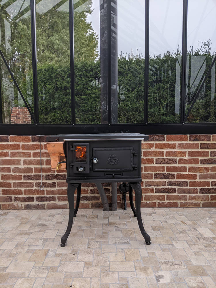 Paigaldasime ühte isikupärasesse välikööki Tartus kvaliteetse malmpliidi ja soliidse korstna.