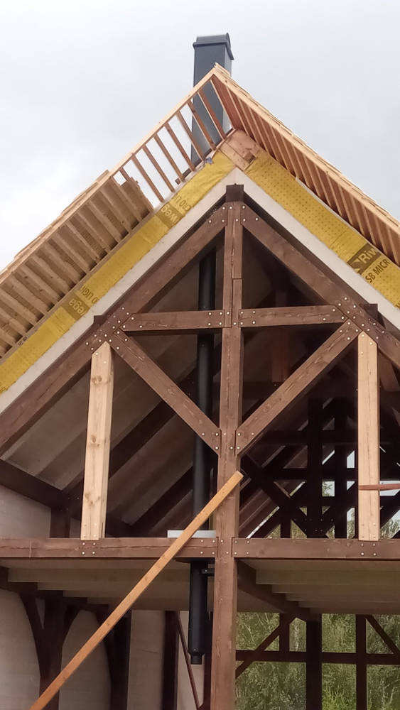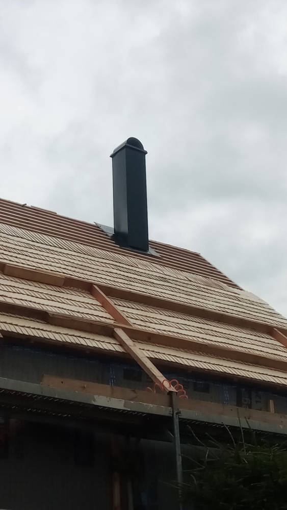 Eelpaigaldasime ühte Saksa stiilis kõrvalhoonesse kauni Landy Facil kaheseinalise metallmoodulkorstna, mis on varustatud puhastusluugiga. Puhastusluuk on integreeritud korstnamoodulisse nõnda, et seda metallmoodulkorstent võib paigalda kõikidele kütteseadmetele otse peale, tagades hea puhastusvõimaluse ja kauni välimuse. Antud projekti puhul läks käiku musta värvi korsten aga saadaval on see ka antratsiithallina ja valgena. Kui objekti põrand on valatud ja katus lõpetatud, siis paigaldame ka kütteseadme.