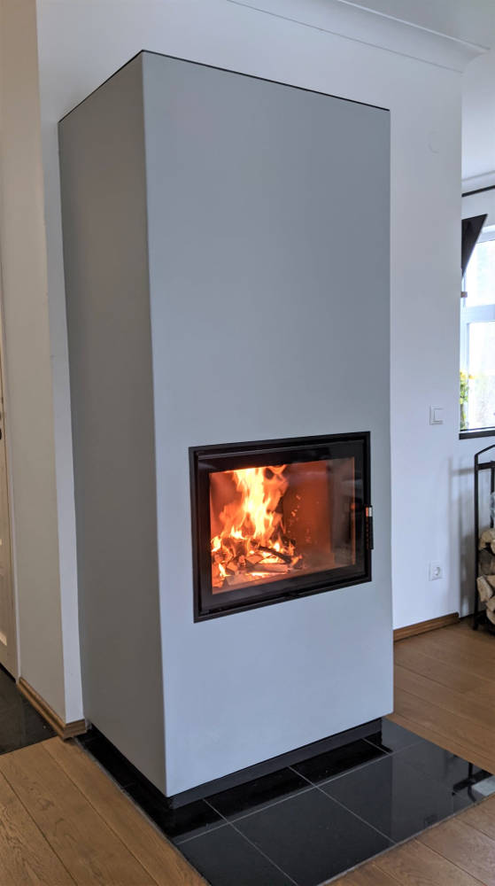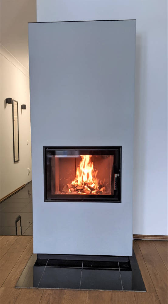 Valmis üks soojustsalvestav kamin ühes kaunis Tallinna kodus, mis tagab soojuse ka pikema elektrikatkestuse korral. Paigaldasime kvaliteetse Unico Dragon 2 kaminasüdamiku ja spetsiaalselt selle kaminasüdamiku jaoks välja töötatud soojustsalvestava kamina väliskesta Unico Fusion D2/5. Klient vali kaminasüdamikust Optima versiooni, mis sisaldab musta koldesisu ja disainkäepidet. Et soojussalvestust veelgi tõsta, siis lisasime kaminasüdamikule ka spetsiaalsed salvestuselemendid. Soojustsalvestava kamina väliskesta peale käib õhuavadega terasest laeplaat, kus tuleb välja kiire soe õhk ja mille kaudu tagatakse juurdepääs puhastamiseks. Väliskesta krohvisime ja värvisime.