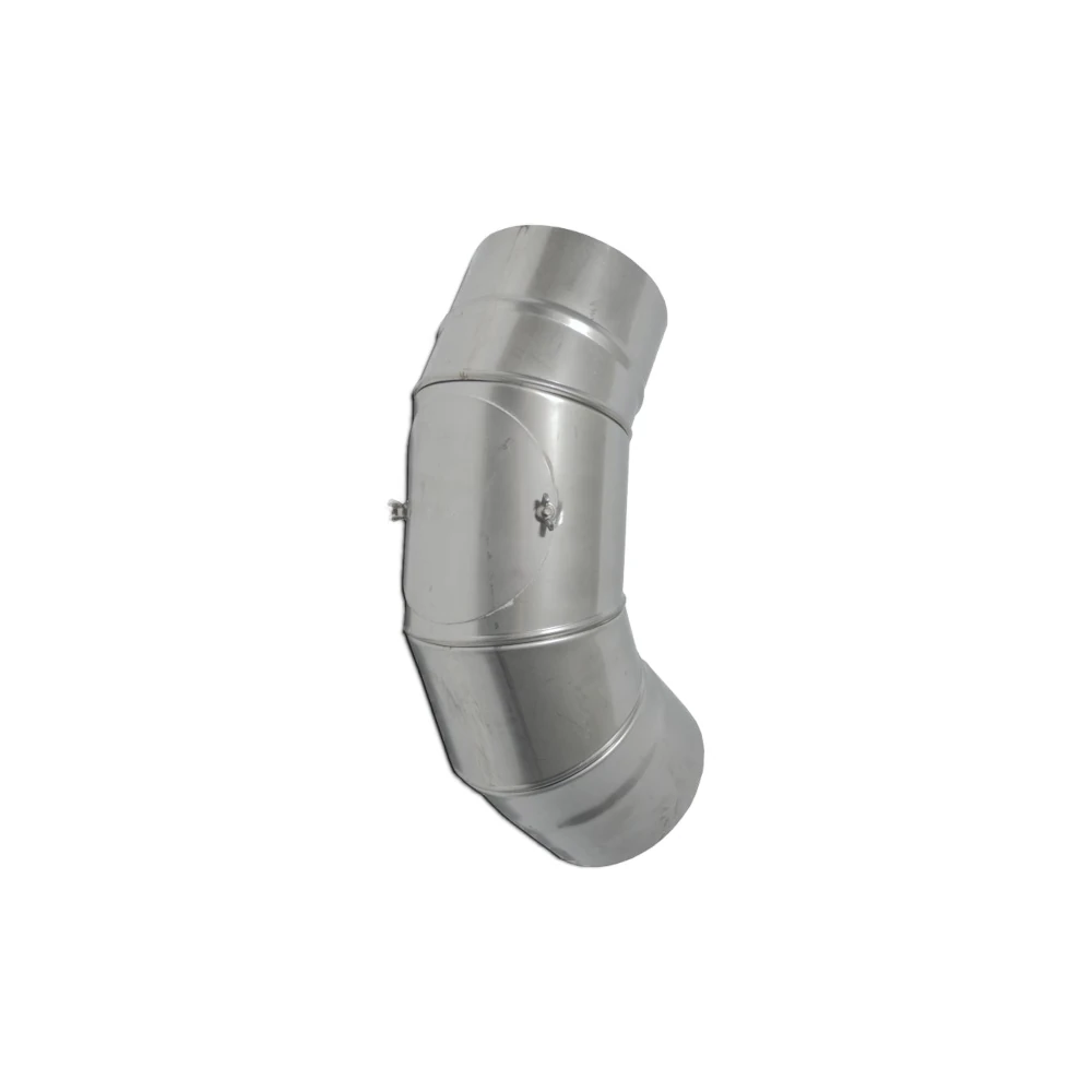 Reguleeritav roostevaba suitsutoru põlv on varustatud puhastusluugiga, mis tagab hea juurdepääsu suitsutoru puhastamiseks.Suitsutoru diameeter on 130 mm ja seina paksus 0,8 mm.
