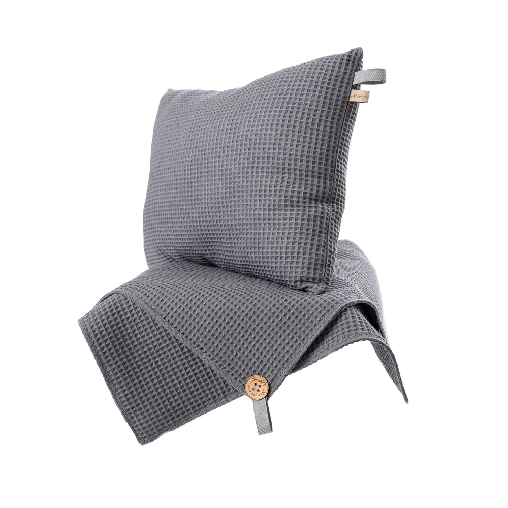 Eestis disainitud ja käsitööna valmistatud hall sauna istumisalus ja padi Mosanna viivad sauna nautimise täiesti uuele tasandile.