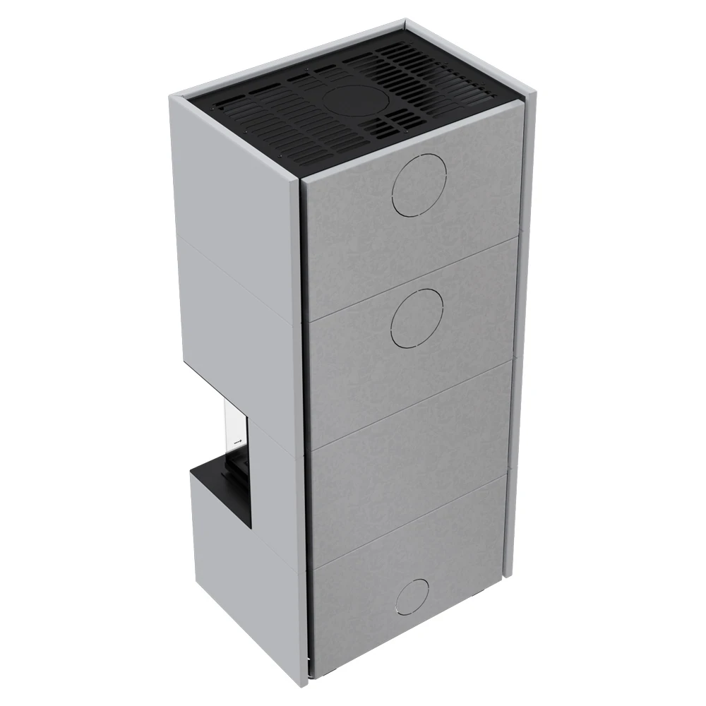 Kratki NBC 7 valmiskaminal on terasest väliskest, mis hakkab kiirelt ümbritsevasse ruumi soojust eraldama. Kaminasüdamikul on stiilne ja suure klaaspinnaga ülestõstetav uks, mis võimaldab elavat ja hubast tuld nautida suisa kolmest küljest korraga.